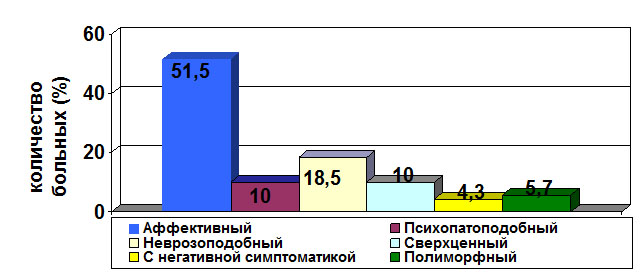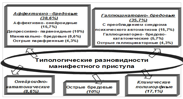 Рис. 2. Типологическая характеристика манифестных шизофренических приступов