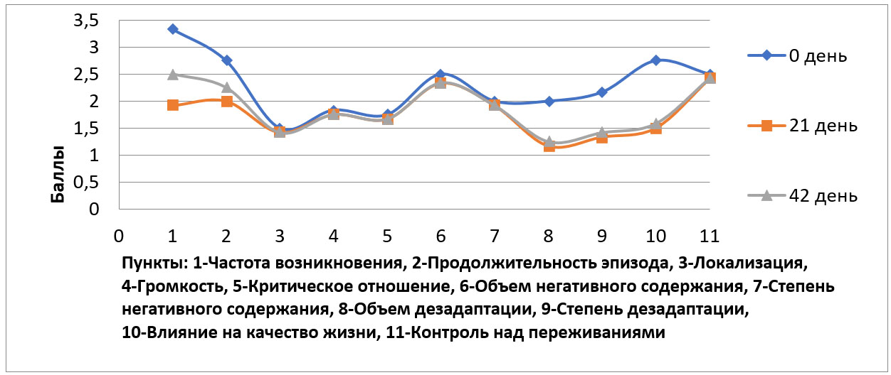 Рисунок 3. Динамика состояния по шкале в основной группе за весь период исследования при 3 разновидности