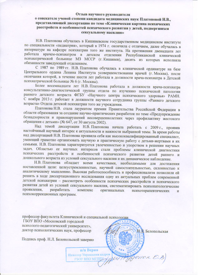 Отзыв научного руководителя профессора Белопольской Н.Л. размещен 20 марта 2014 года