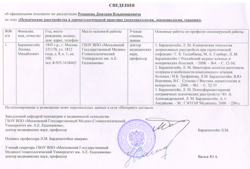 Сведения об официальном оппоненте Барденштейне Л.М.