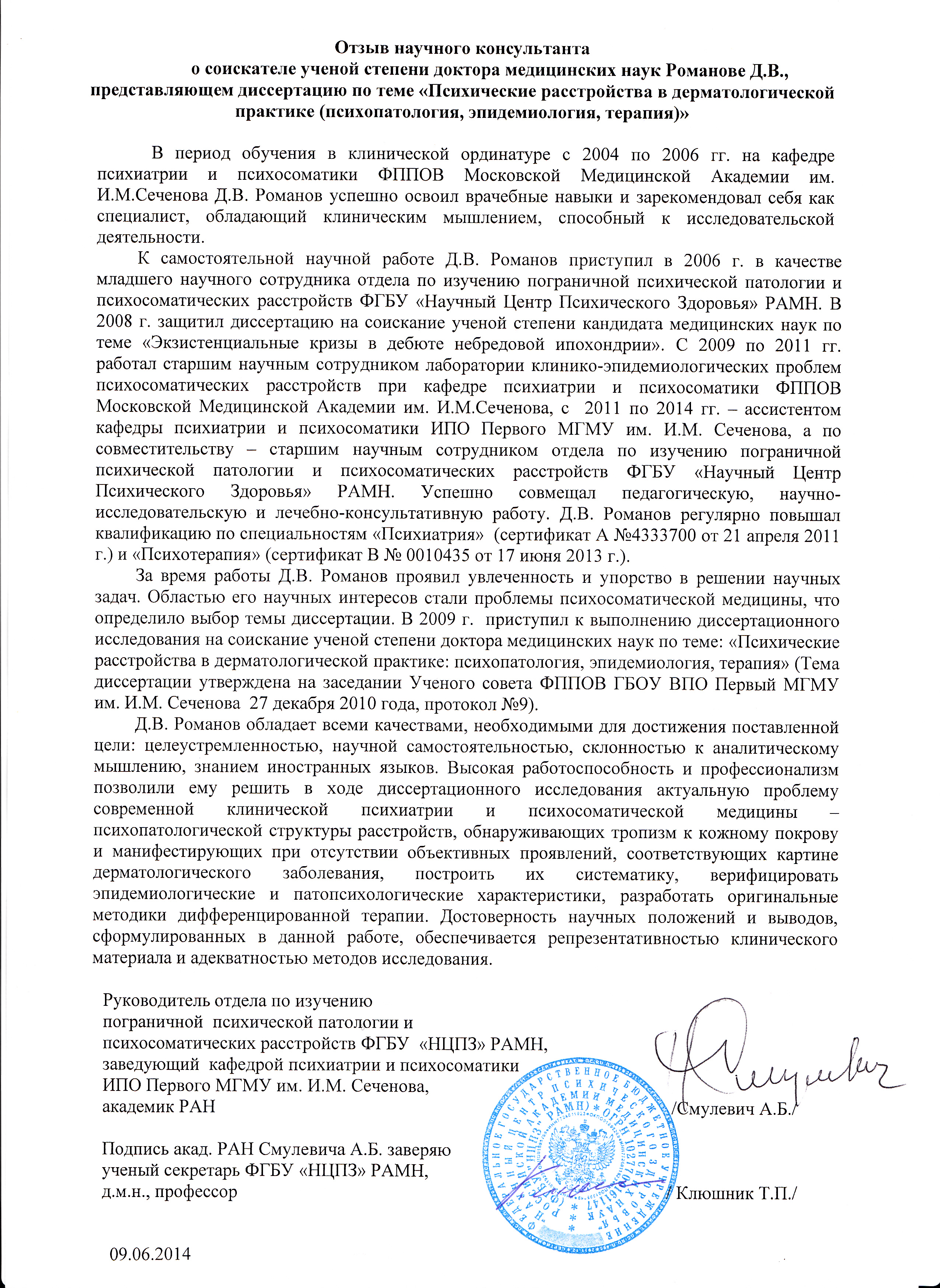 отзыв научного консультанта академика РАН А.Б.Смулевича, размещена 30 июня 2014